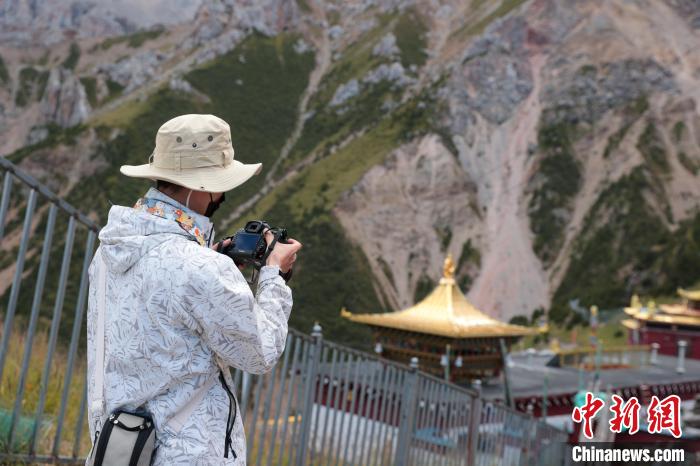 8月20日,參加2024瀾湄國(guó)際影像周的中外嘉賓來(lái)到青海省玉樹(shù)藏族自治州囊謙縣的達(dá)那寺,攝影師拍照留念。達(dá)那寺是囊謙縣唯一一座國(guó)家級(jí)文物保護(hù)單位。達(dá)那寺藏語(yǔ)稱(chēng)為“達(dá)那僧格南宗”,意為“馬耳獅子天堡”,因其坐落之山形似獅子、山上一塊巖石酷似馬耳而得名。中新社記者 薛蒂 攝