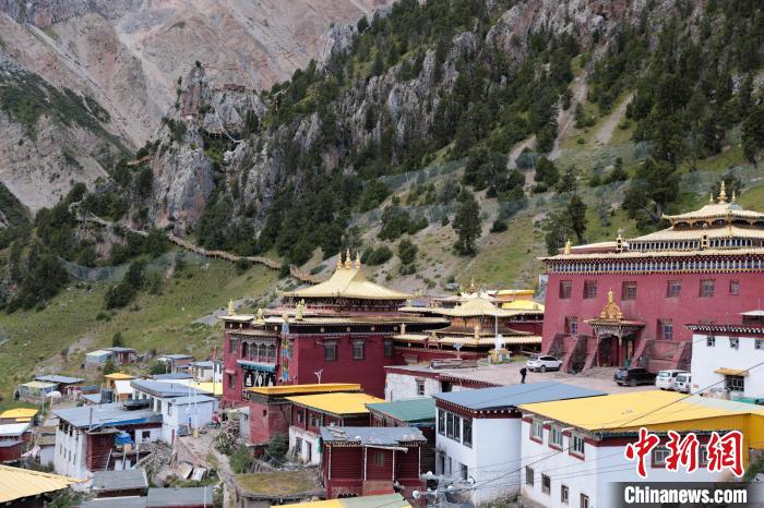 8月20日,參加2024瀾湄國(guó)際影像周的中外嘉賓來(lái)到青海省玉樹(shù)藏族自治州囊謙縣的達(dá)那寺。達(dá)那寺是囊謙縣唯一一座國(guó)家級(jí)文物保護(hù)單位。達(dá)那寺藏語(yǔ)稱(chēng)為“達(dá)那僧格南宗”,意為“馬耳獅子天堡”,因其坐落之山形似獅子、山上一塊巖石酷似馬耳而得名。中新社記者 薛蒂 攝