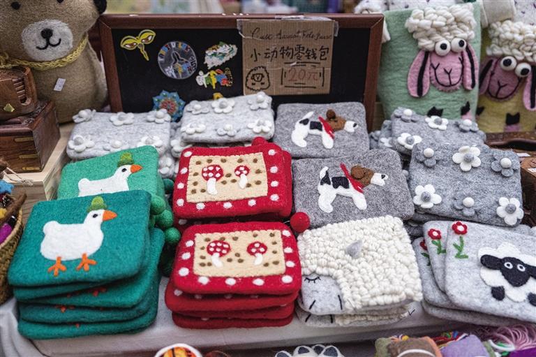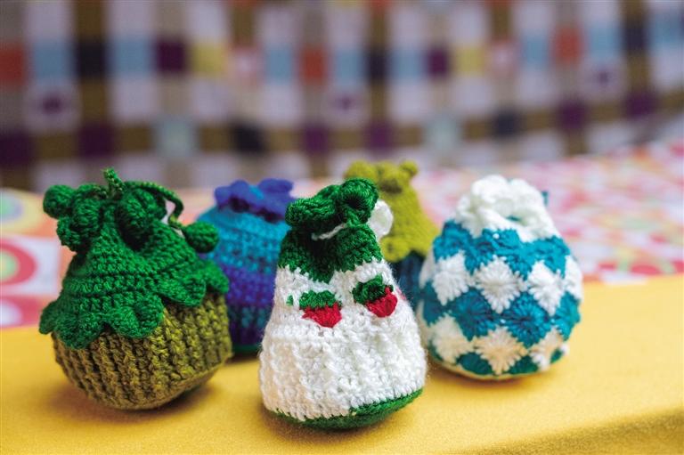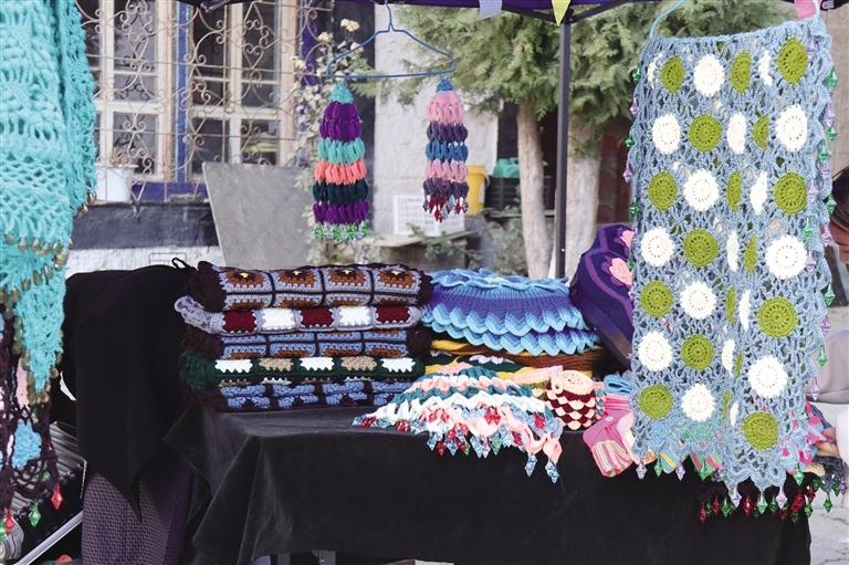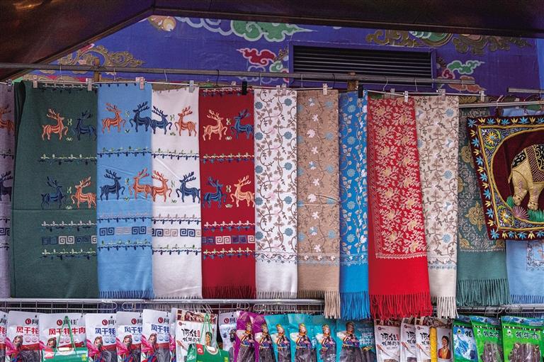阿佳們親手鉤織的毛線茶杯套、毛線桌墊,既實(shí)用又色彩鮮明,墻上掛滿的手工編織牛毛包讓人“糾結(jié)癥”都犯了!和這座商城的建筑一樣,這里出售的美物將藏式美學(xué)展現(xiàn)得淋漓盡致。此外,這里還能淘到毛氈玩偶、毛氈風(fēng)鈴、毛茸茸的藏戲面具掛件等一些能給生活增添樂趣的“小廢物”。