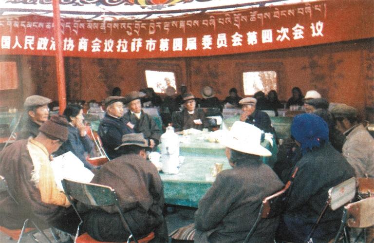 圖為1986年10月,拉薩市政協四屆四次會議上委員正在分組討論。