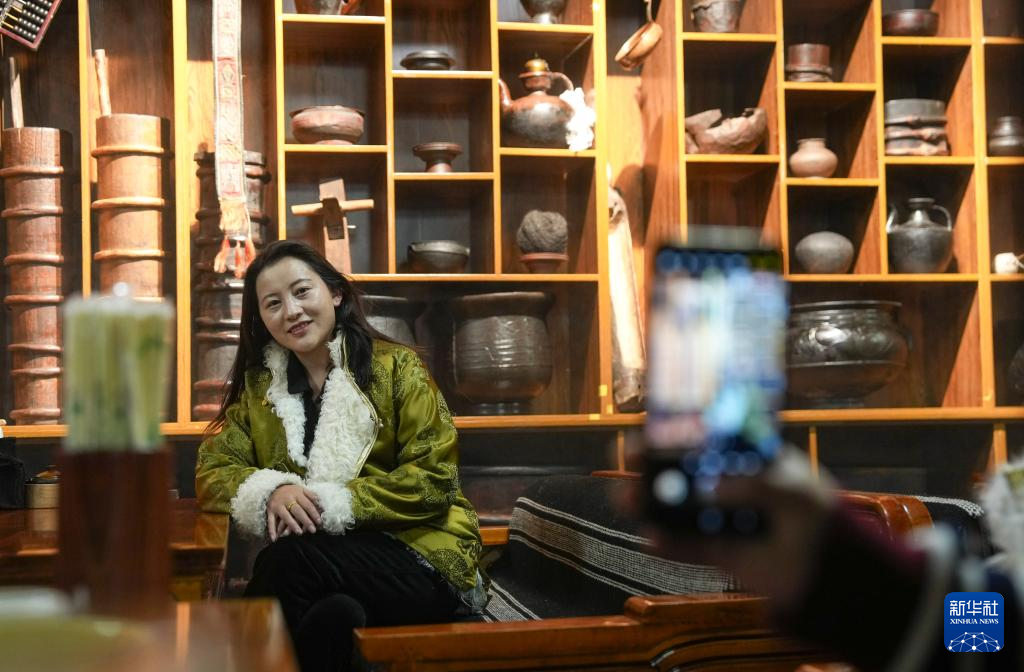 西藏那曲市“牧人寶庫(kù)”茶館的主人珠珠(2月13日攝)。新華社記者 晉美多吉 攝