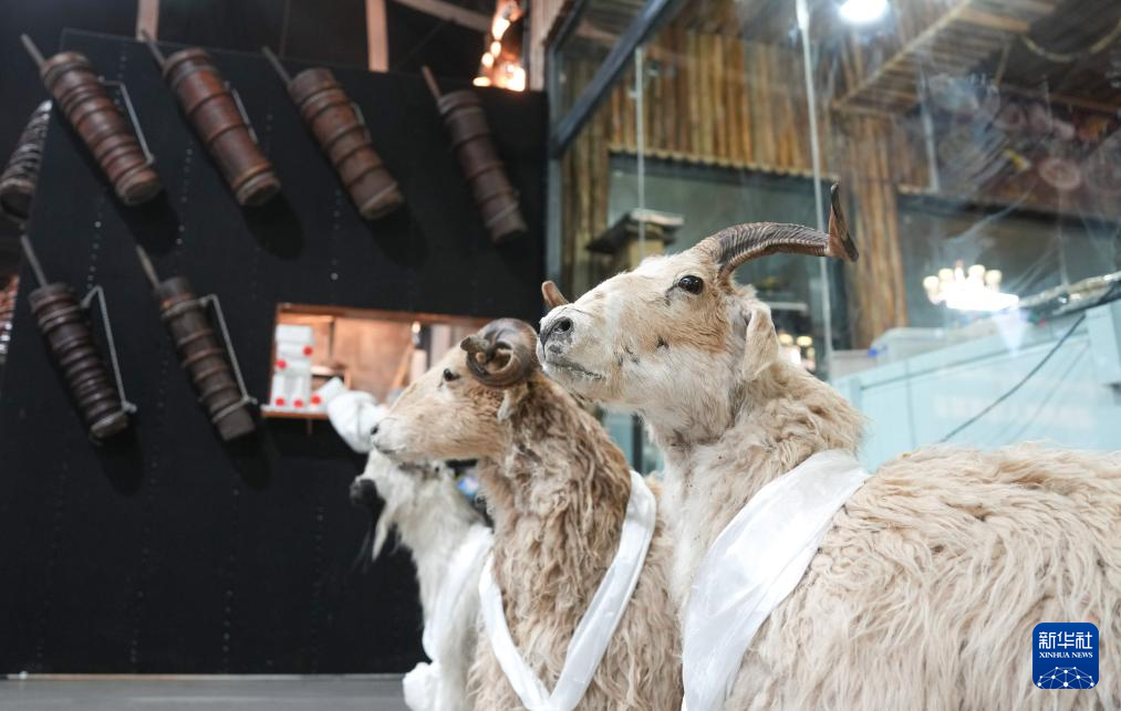 當(dāng)?shù)孛袼讓<邑暡悸逋凇澳寥藢殠?kù)”藏式茶館展示擠羊奶用的木桶(2月13日攝)。新華社記者 晉美多吉 攝