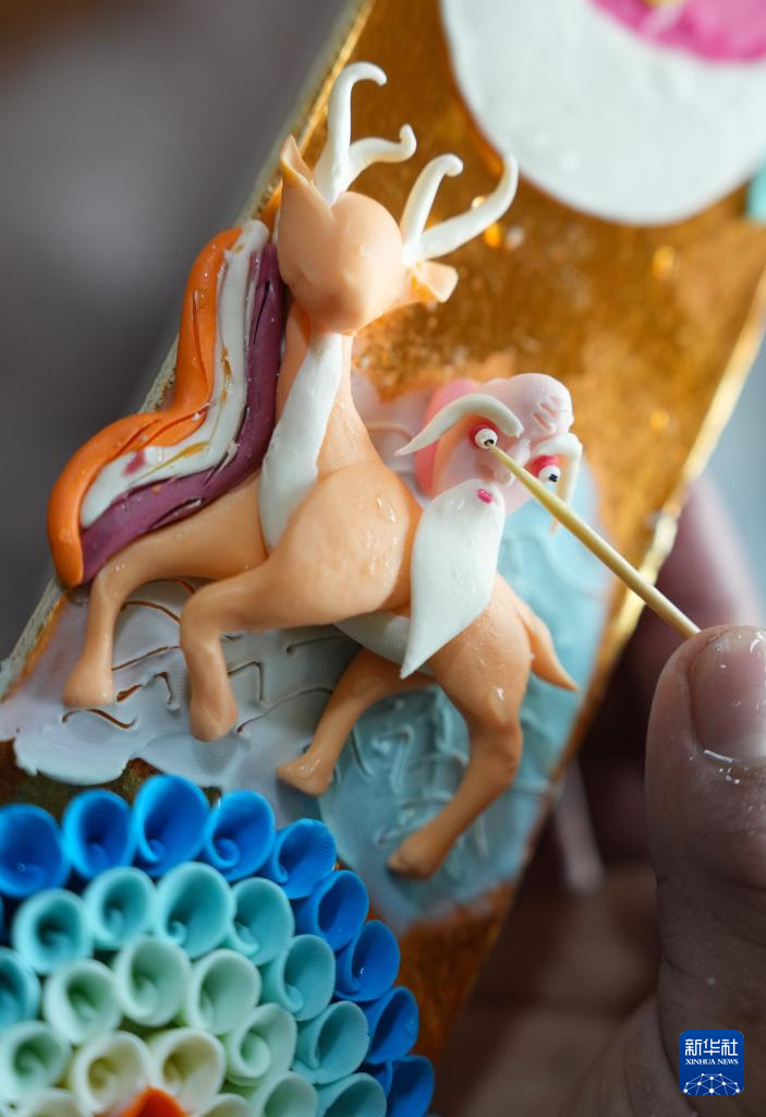 在拉薩市老城區(qū),手工藝人在展示酥油花(2月25日攝)。新華社記者 姜帆 攝