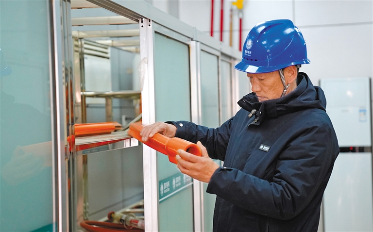 扎西尼瑪在進行電力安全工器具檢查。記者 薛瑩 拉巴卓瑪 攝