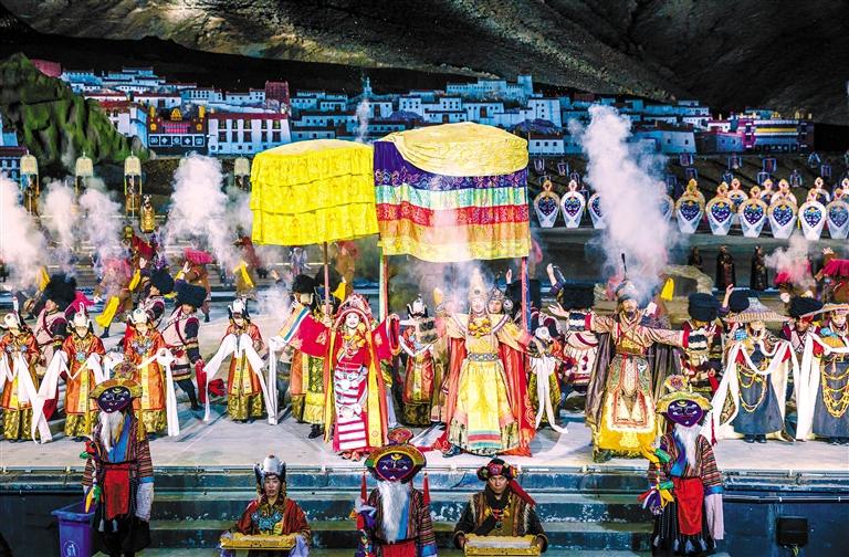 《文成公主》大型實(shí)景劇以文成公主入藏為主題,以鑄牢中華民族共同體意識(shí)為根本遵循,講述文成公主與松贊干布聯(lián)姻、促進(jìn)民族融合發(fā)展的故事,展現(xiàn)新時(shí)代新西藏的獨(dú)特魅力和繁榮景象。12年來(lái),該劇累計(jì)演出2100多場(chǎng),演出及園區(qū)旅游配套累計(jì)接待觀眾游客超3200萬(wàn)人次,為當(dāng)?shù)厝罕姲l(fā)放薪資超5億元。