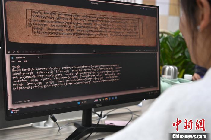 2月27日,在甘肅甘南藏族自治州碌曲縣益西達(dá)吉科技有限公司內(nèi),工作人員正在進(jìn)行藏文古籍?dāng)?shù)字化相關(guān)工作。九美旦增 攝