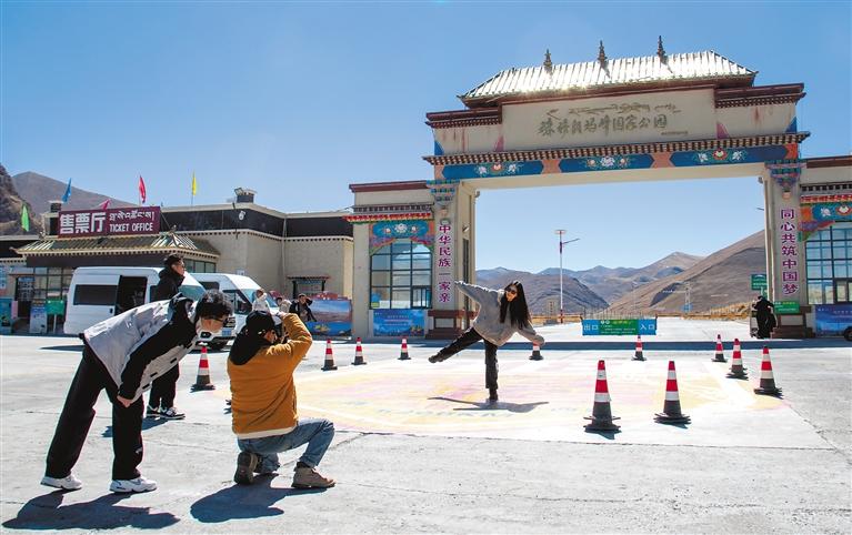 圖為游客在219國道5000公里打卡點(diǎn)拍照打卡。記者 旦增嘎瓦 扎西頓珠 攝