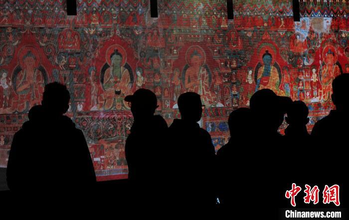 圖為觀眾在西藏博物館內(nèi)欣賞阿里古格經(jīng)典壁畫(huà)數(shù)字化成果展。李林 攝
