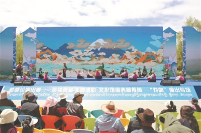 圖為“格?;ㄑ莩黾尽腋N鞑?扎西德勒”文化館服務宣傳周戲曲專場演出現(xiàn)場。 拉薩融媒記者 滿文妍攝
