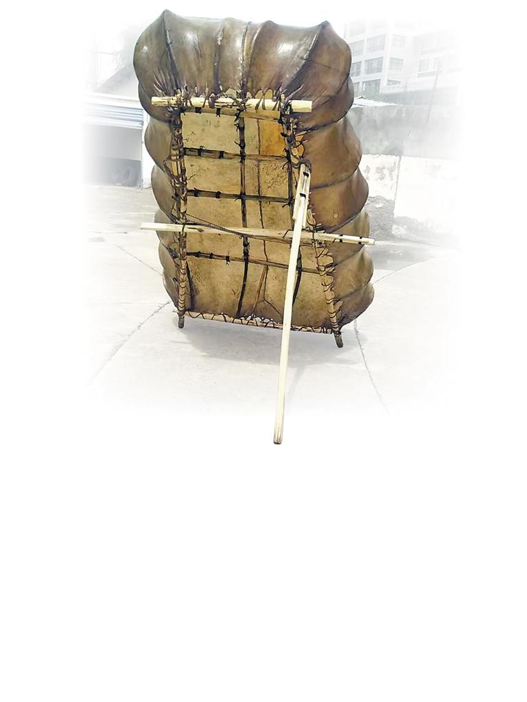 每次制作牛皮船前,手藝人先要將牛皮在水中浸泡處理,再將酥油或動物油脂等碾碎、涂抹,經(jīng)晾曬,牛皮呈現(xiàn)黃褐色,再對牛皮進行縫制,對針腳、線條、松緊都有一定的要求。次仁說:“所有材料備好后,在制船的最后一天,邀請村里經(jīng)驗最豐富的牛皮船技師來完成最重要的制船工序。而在之后的船只使用過程中,還要經(jīng)常性地用酥油等油脂對牛皮船進行保養(yǎng),防止牛皮破裂。”