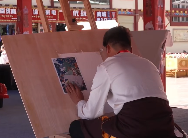 該賽事匯聚了11縣(區(qū))60余名選手同臺競技,讓非遺技藝綻放璀璨光彩?;顒蝇F(xiàn)場,極具特色的“十韻匠心”手繪形象圖與立體打卡點(diǎn)相映成趣,營造出濃厚的文化氛圍。首日賽事聚焦兩大傳統(tǒng)技藝——“指韻匠心·唐卡繪畫技藝”與“香韻匠心·藏香制作技藝”,參賽選手既有堅(jiān)守?cái)?shù)十載的老藝人,也有創(chuàng)新傳承的新藝人,新老同臺共譜“薪火相傳”的生動篇章。