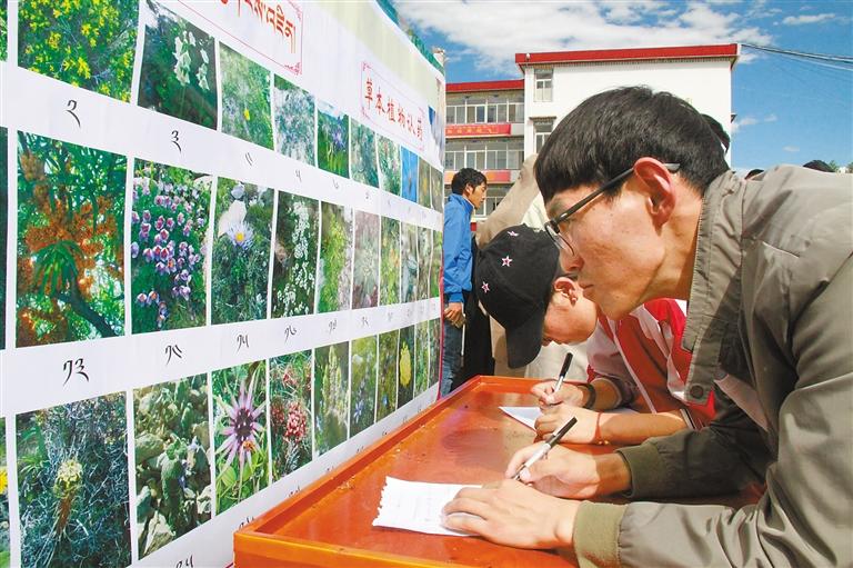 西藏藏醫(yī)藥大學學生參加藏醫(yī)藥草本植物認藥知識競賽。西藏藏醫(yī)藥大學提供