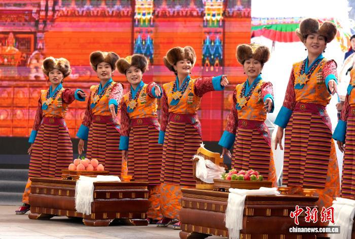 10月19日,“格?;ū崩_市第六屆縣(區(qū))藝術(shù)團(tuán)文藝調(diào)演頒獎(jiǎng)活動(dòng)在布達(dá)拉宮腳下的宗角祿康公園舉行。現(xiàn)場(chǎng),拉薩市各縣(區(qū))藝術(shù)團(tuán)帶來精彩節(jié)目。圖為文藝調(diào)演頒獎(jiǎng)活動(dòng)上的文藝表演。中新社記者 李林 攝