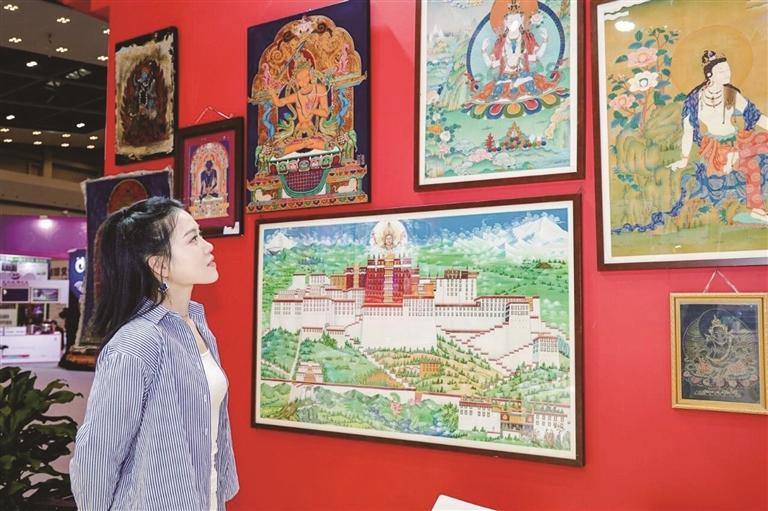 場(chǎng)館外,熱情奔放的康巴歌舞洋溢著濃郁的民族風(fēng)情。走進(jìn)場(chǎng)館內(nèi)部,可以近距離體驗(yàn)藏香制作和飄逸靈動(dòng)的藏文書法。唐卡漆畫、民族手工飾品等藏東文化和蟲草、貝母、藏紅花等特色產(chǎn)品琳瑯滿目,更有邊壩三色湖、貢覺拉妥濕地、芒康千年鹽田、洛隆俄西杏花等雪域美景,進(jìn)館咨詢互動(dòng)的企業(yè)、嘉賓絡(luò)繹不絕。