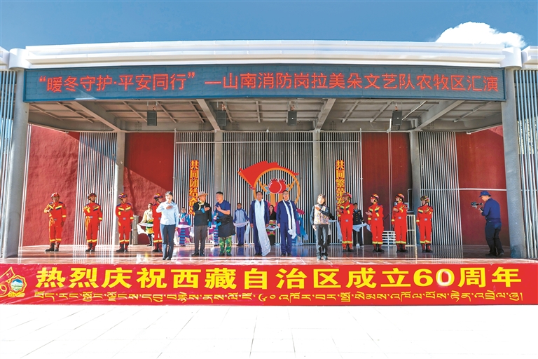 圖為山南市消防救援支隊(duì)崗拉美朵文藝隊(duì)演出現(xiàn)場(chǎng)。記者 王香香 見習(xí)記者 土旦仁青 攝