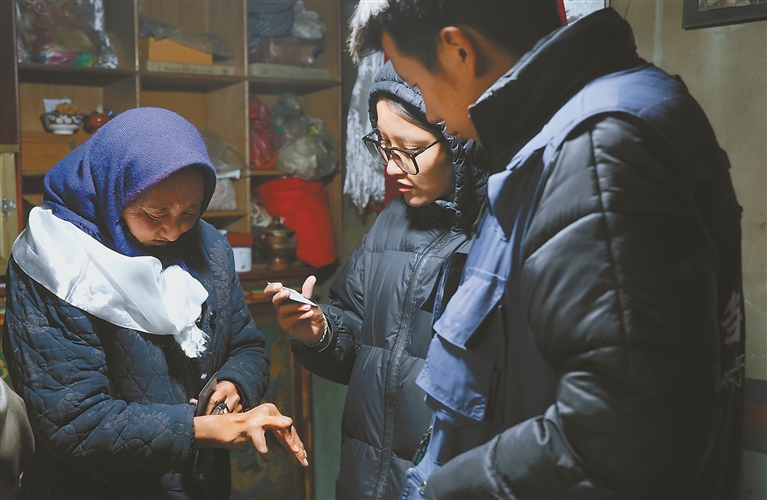 圖為西藏星光社會(huì)工作服務(wù)中心工作人員在當(dāng)雄縣公塘鄉(xiāng)巴嘎當(dāng)村,入戶(hù)走訪幫扶轄區(qū)困境老人。記者 格桑倫珠 攝