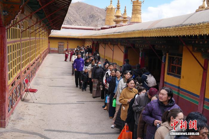 圖為信眾在哲蚌寺內(nèi)有序排隊朝拜。貢確 攝