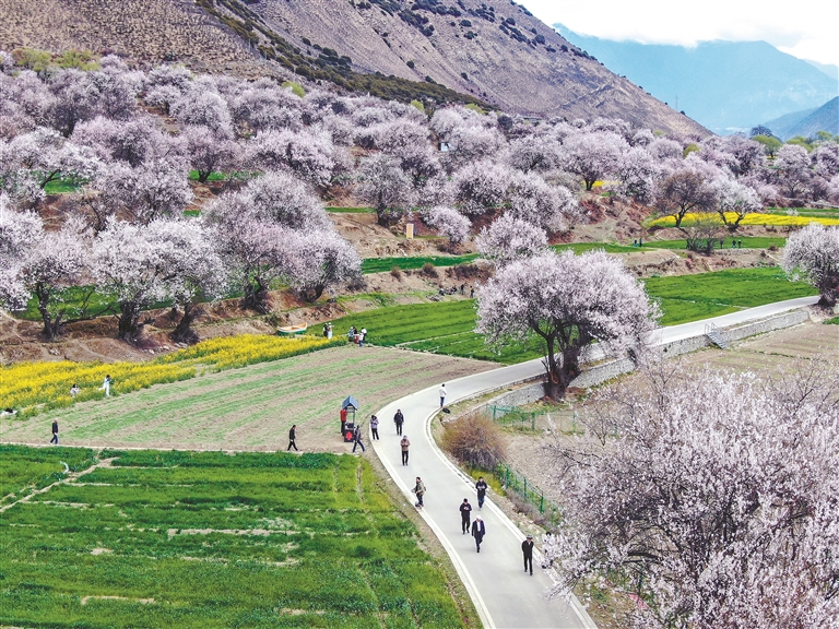 漫山桃花常開(kāi),生態(tài)之美、百姓之富、產(chǎn)業(yè)之興,在春風(fēng)里、在繁花中,徐徐鋪展成雪域江南獨(dú)有的錦繡長(zhǎng)卷。