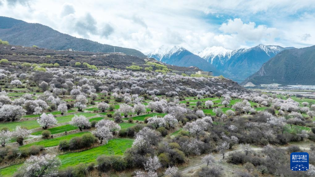 這是4月2日在林芝巴宜區(qū)朵當(dāng)村拍攝的桃林(無(wú)人機(jī)照片)。新華社記者 丁增尼達(dá) 攝