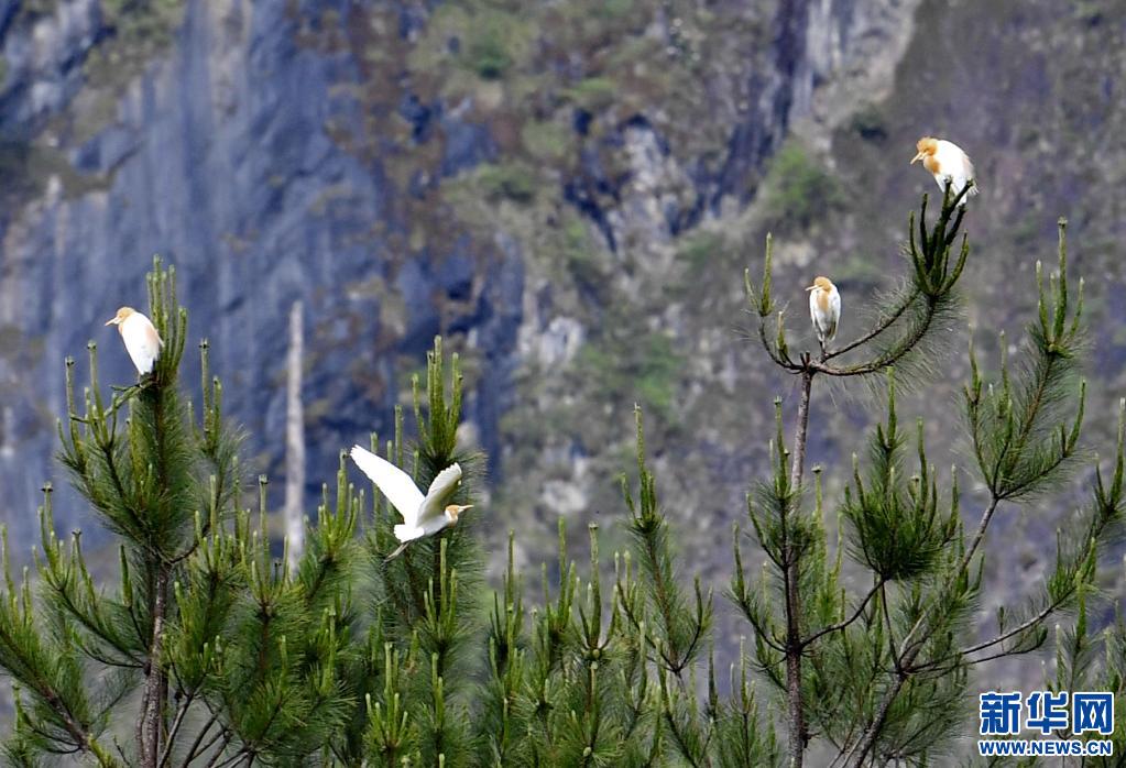 牛背鷺在易貢國家地質(zhì)公園棲息(5月22日攝)。新華社記者 張汝鋒 攝