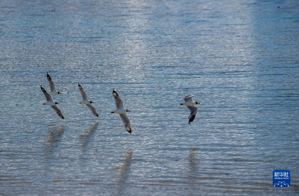 水鳥(niǎo)在羊卓雍錯(cuò)湖面滑翔(7月2日攝)。新華社記者 孫非 攝