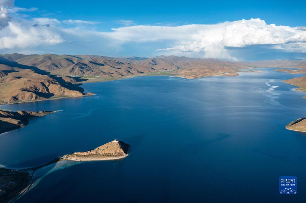 這是羊卓雍錯(cuò)(7月2日攝,無(wú)人機(jī)照片)。新華社記者 孫非 攝