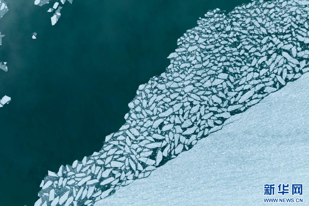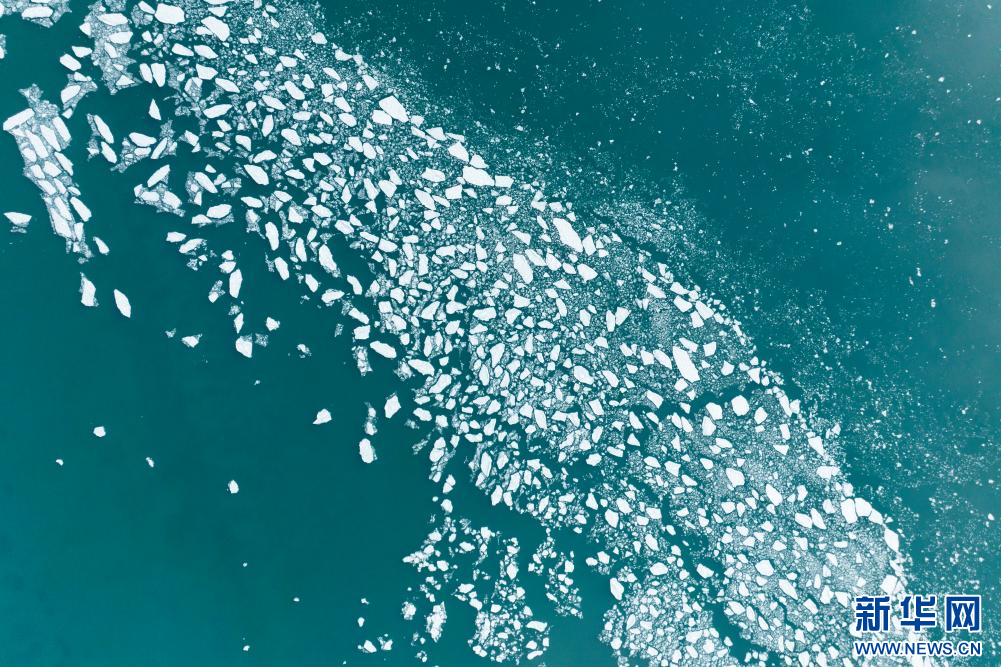 1月29日拍攝的瑪旁雍錯(cuò)湖面上的冰堆積在一起,呈現(xiàn)出各式各樣的造型(無(wú)人機(jī)照片)。新華網(wǎng) 旦增努布 攝