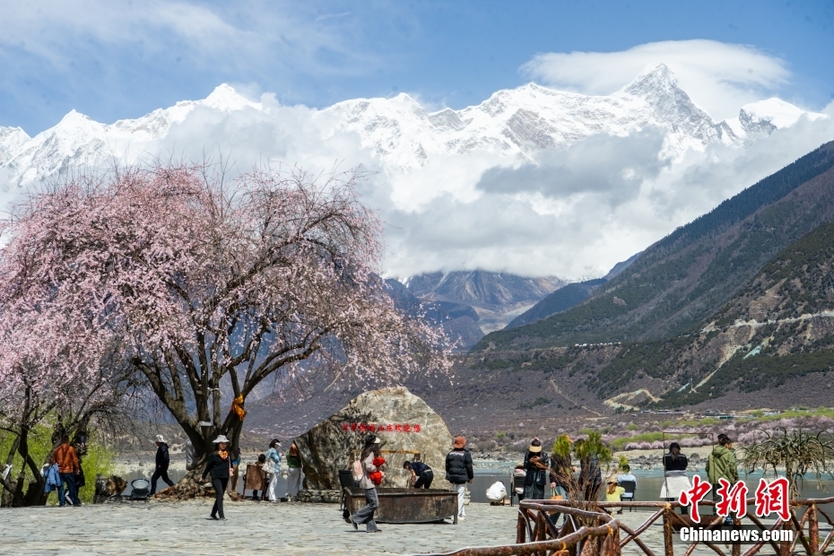 4月1日,西藏林芝市米林市境內(nèi)的南迦巴瓦峰下,桃花盛開,吸引眾多游客前來游玩。南迦巴瓦峰被譽(yù)為“眾山之父”,海拔7782米,其山頂終年積雪,而山腳下則是郁郁蔥蔥的樹木和盛開的桃花,形成了一幅獨(dú)特的垂直自然景觀。圖為桃花掩映下的南迦巴瓦峰。