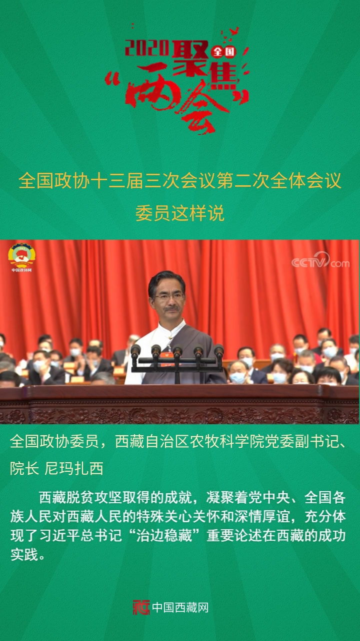 全國政協(xié)委員,西藏自治區(qū)農(nóng)牧科學(xué)院黨委副書記、院長尼瑪扎西發(fā)言說,西藏脫貧攻堅(jiān)取得的成就,凝聚著黨中央、全國各族人民對(duì)西藏人民的特殊關(guān)心關(guān)懷和深情厚誼,充分體現(xiàn)了習(xí)近平總書記“治邊穩(wěn)藏”重要論述在西藏的成功實(shí)踐。