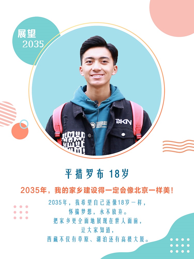黨的十九屆五中全會(huì)提出,到2035年基本實(shí)現(xiàn)社會(huì)主義現(xiàn)代化。你期待2035年的到來(lái)嗎?在你心中,2035年的中國(guó)會(huì)是什么樣?未來(lái)15年,你有哪些大規(guī)劃、小目標(biāo)?中國(guó)西藏網(wǎng)策劃推出系列海報(bào),本期帶你走進(jìn)少年們關(guān)于2035年的展望與暢想。