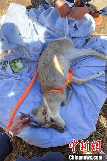 圖為受傷的國家二級保護(hù)野生動(dòng)物雄性藏原羚。達(dá)日縣森林公安局供圖