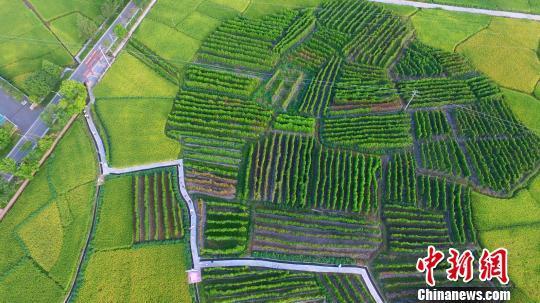 2019年8月24日,航拍江西省安遠縣鳳山鄉(xiāng)東河村進入采收季的紫山藥基地。 (資料圖) 王劍 攝