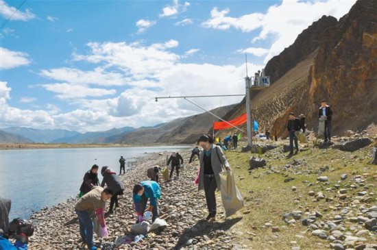 圖為基層河長(zhǎng)辦組織干部職工開(kāi)展河道衛(wèi)生清理。西藏日?qǐng)?bào)記者 潘璐 攝