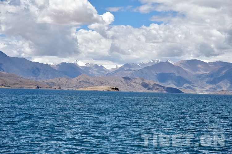 中國(guó)西藏網(wǎng)訊 汽車從西藏自治區(qū)阿里地區(qū)日土縣城出發(fā)后,繼續(xù)沿著國(guó)道219線行駛約12公里,連綿山巒間,一片蔚藍(lán)映入眼簾。這便是班公湖。