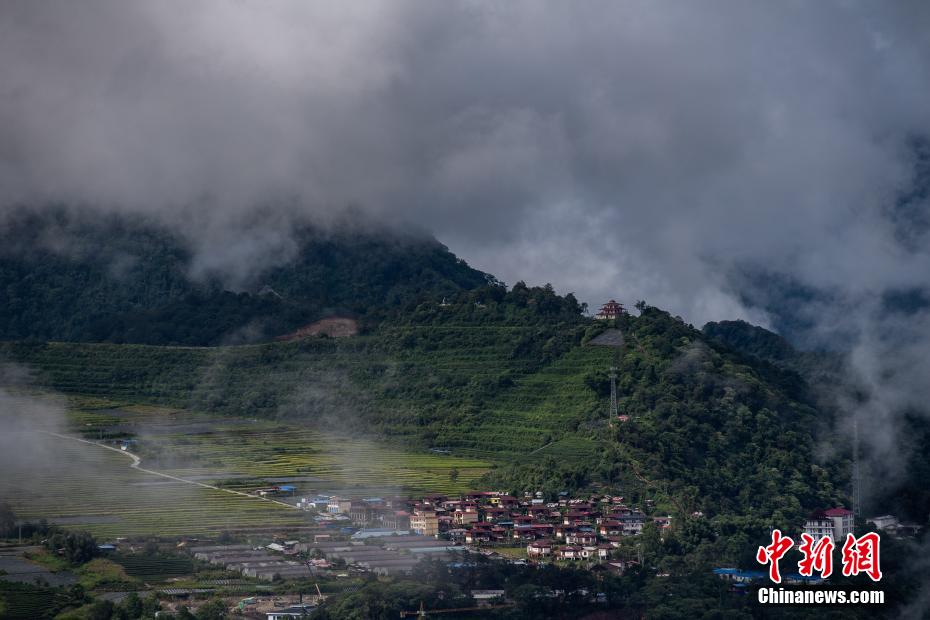走進(jìn)墨脫,總會(huì)遇見繚繞的云霧,墨脫縣城就隱逸在這縹緲的云霧中,宛若仙境一般。圖為云霧繚繞的墨脫縣城。 何蓬磊 攝