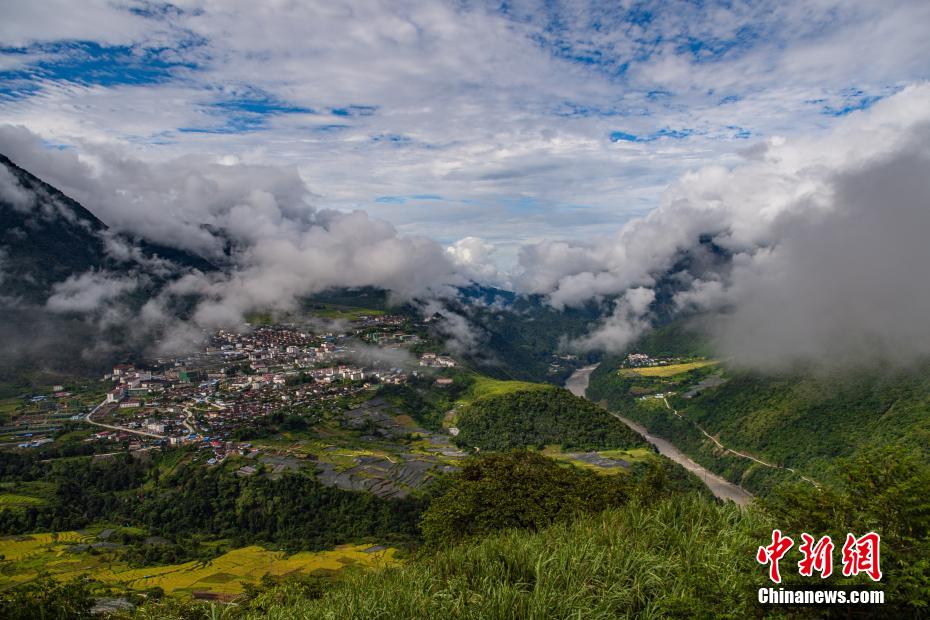 林芝市墨脫縣位于西藏自治區(qū)東南部,有“蓮花秘境”之稱,平均海拔1200米。因地處雅魯藏布江下游、喜馬拉雅山脈東端南麓,這里濕潤(rùn)多雨,風(fēng)景秀麗,氣候宜人。圖為云霧繚繞的墨脫縣城。 何蓬磊 攝