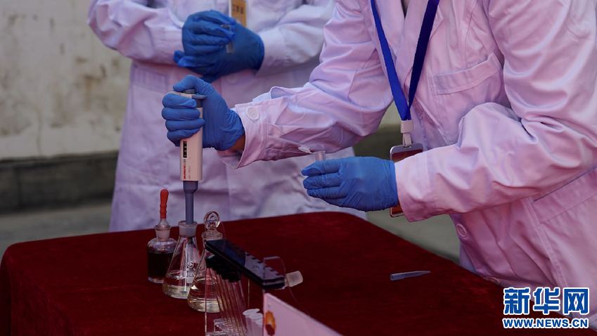 拉薩725油庫化驗人員正在演示甲醛快速檢測法(10月21日攝)。新華網(wǎng) 達珍 攝