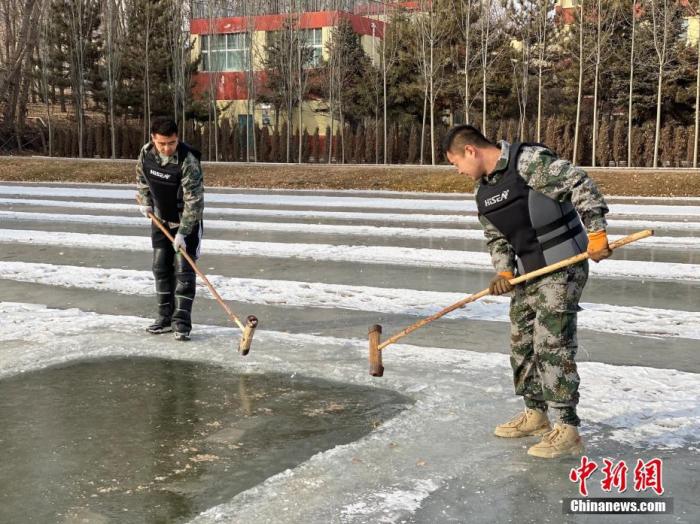 資料圖為2020年12月28日,青海湖裸鯉救護(hù)中心工作人員在室外漁場破冰觀察裸鯉活動情況。 中新社記者 李江寧 攝