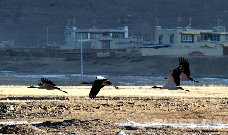 鶴聚拉薩林周,專人護航越冬