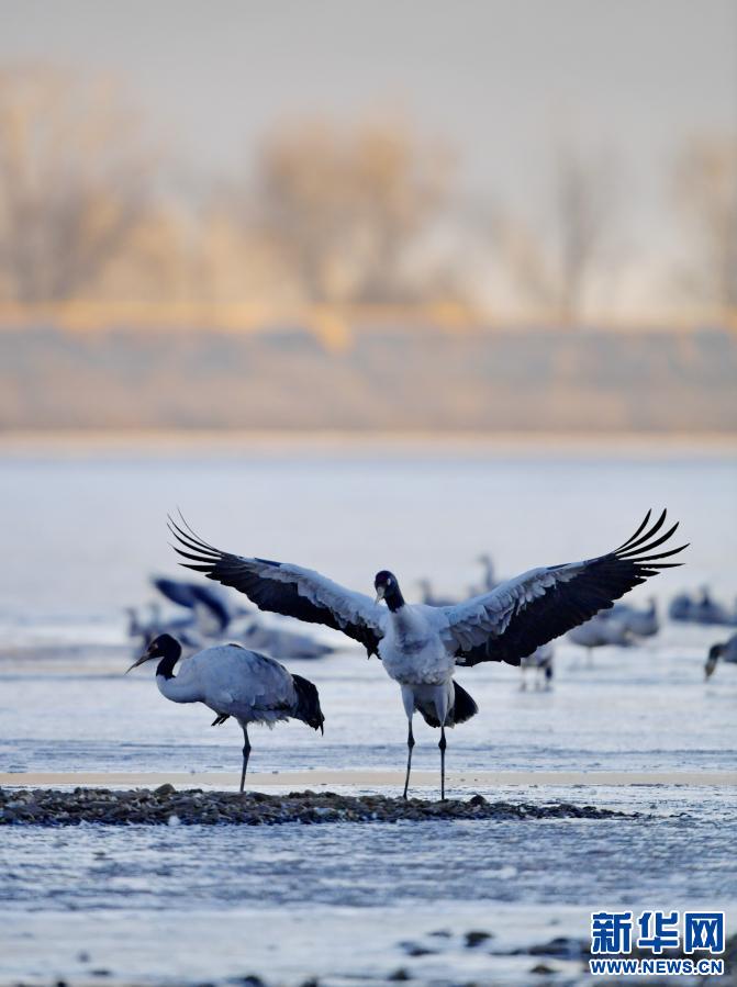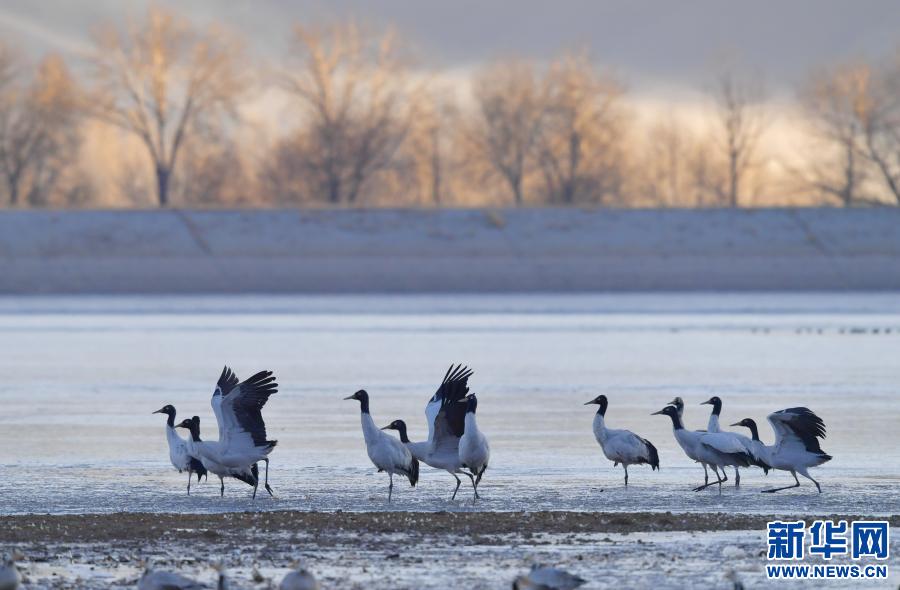 冬日,大批黑頸鶴在西藏拉薩市林周縣境內棲息、覓食。 林周縣黑頸鶴自然保護區(qū)建立于1993年,2003年被設立為國家級自然保護區(qū),是雅魯藏布江中游自然保護區(qū)的核心部分,在每年的11月底至12月初,這里便會迎來成群的黑頸鶴過冬。