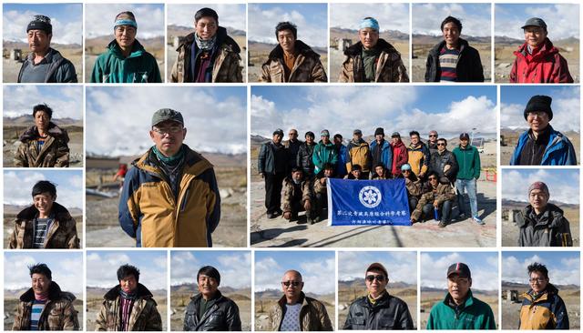 第二次青藏高原綜合科考“河湖源”冰川與環(huán)境變化考察隊在西藏阿里地區(qū)日土縣東汝鄉(xiāng)阿汝村留影(拼版照片,2017年9月13日攝)。新華社發(fā)(劉東君 攝)