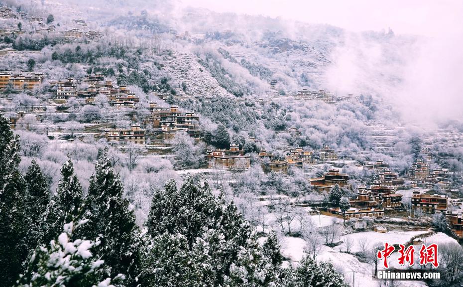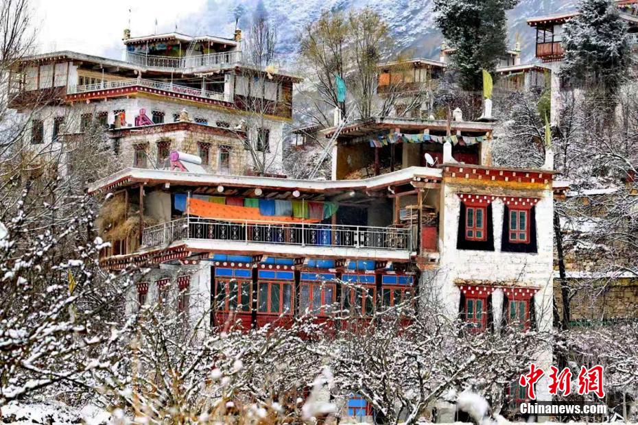 圖為雪后的丹巴甲居藏寨。 降初澤郎 攝