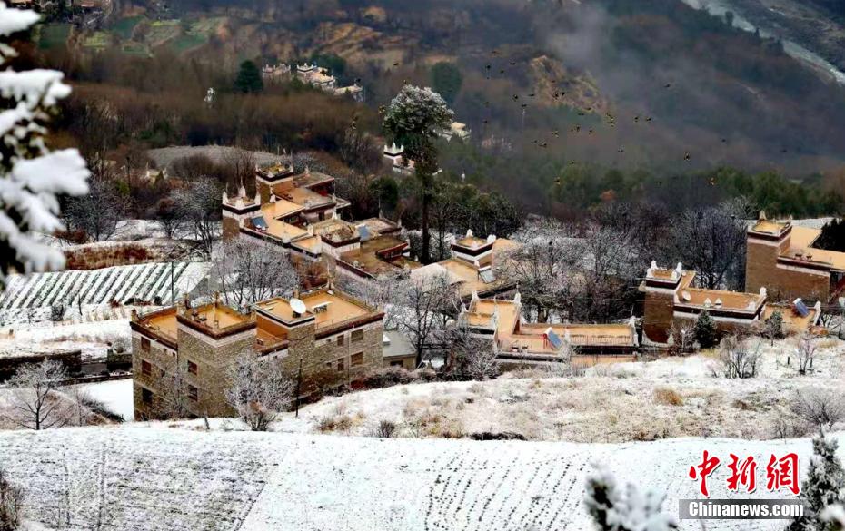 圖為丹巴藏寨披上一層“白紗”。 吉進(jìn) 攝