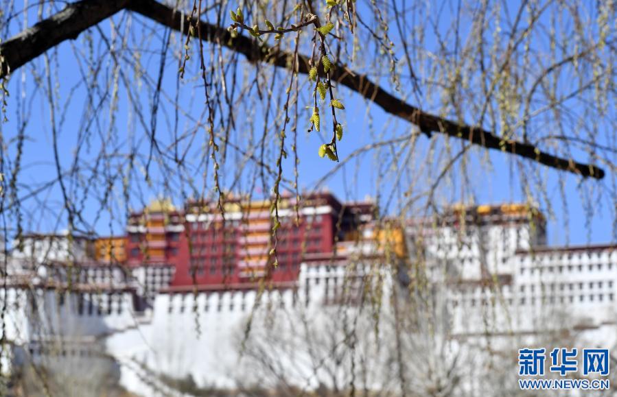 這是布達拉宮腳下發(fā)芽的柳樹(3月3日攝)。新華社記者 覺果 攝