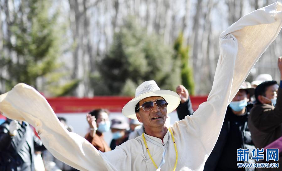 3月8日,人們在拉薩龍王潭公園跳舞。新華社記者 覺果 攝