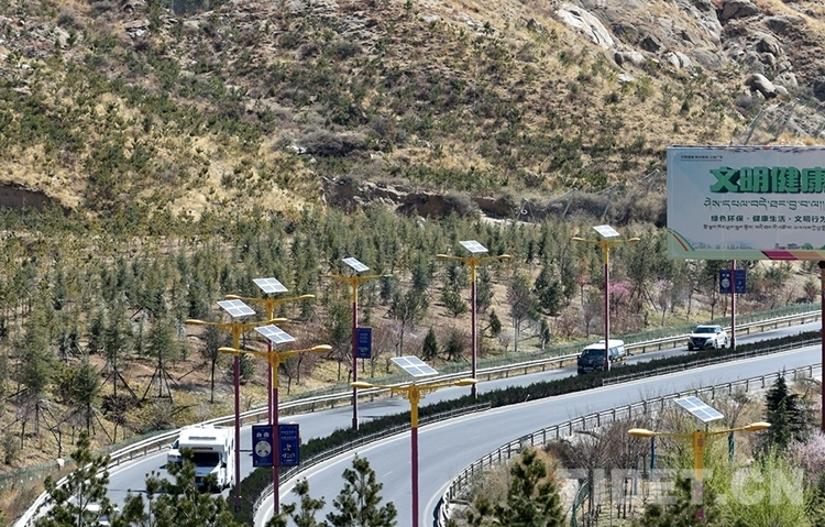 桃紅柳綠時節(jié),驅(qū)車行駛在拉薩北環(huán)路,道路兩旁綻放著桃花、海棠等花卉,山坡上點綴生長著青翠樹木,讓人感覺春意盎然。