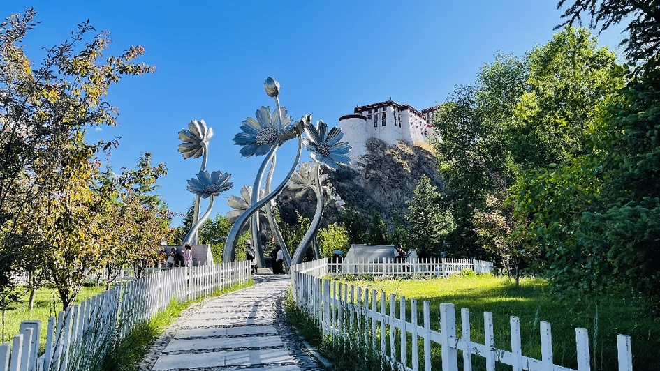 從宗角祿康公園仰望布達拉宮(6月14日攝)。 羅布曲珍 攝