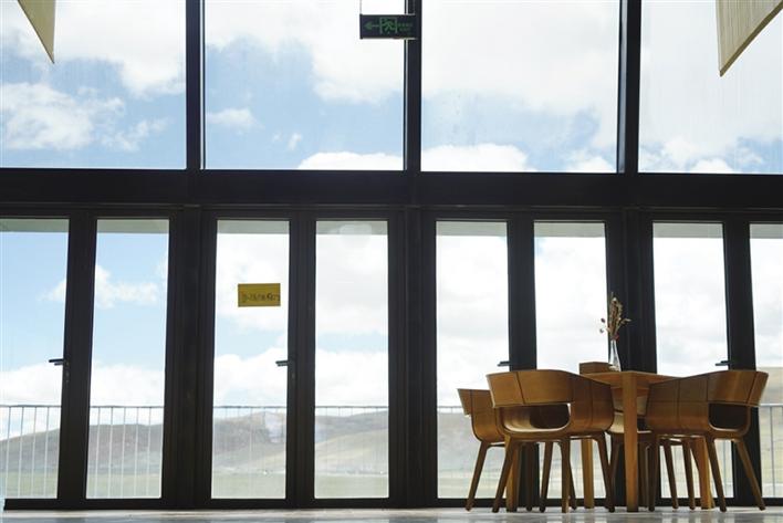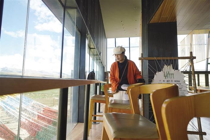 從正門進(jìn)入,穿過牦牛文化空間走廊,便可到能夠以最佳視角欣賞念青唐古拉山的VR觀景臺(tái)。緊鄰觀景臺(tái)右側(cè),是一間擺放當(dāng)?shù)匚膭?chuàng)產(chǎn)品、各類書籍的觀景咖啡廳。該咖啡廳的兩面墻體設(shè)計(jì)為超大落地窗,在此休息的游客可以邊品嘗咖啡,邊欣賞念青唐古拉山及拉多草原的美景。走進(jìn)咖啡廳,記者看到不少在這里休息的游客都在低頭寫著什么,經(jīng)咖啡廳負(fù)責(zé)人介紹:“這些游客是在寫明信片,我們這里不僅提供餐飲,還提供印有本地風(fēng)景的明信片,并同中國(guó)郵政合作,幫助游客按時(shí)將明信片寄到他們的親朋好友手中,讓游客們的旅途變得更有意義?!?/p>