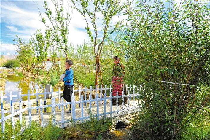 圖為阿里地區(qū)噶爾縣獅泉河鎮(zhèn)加木村村民在綠樹(shù)成蔭的村莊里散步。記者 溫凱 洛桑旦增 達(dá)珍 攝