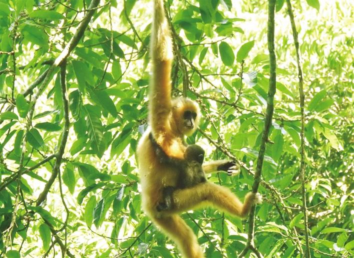 這是2021年5月拍攝的海南長臂猿B群幼猿。